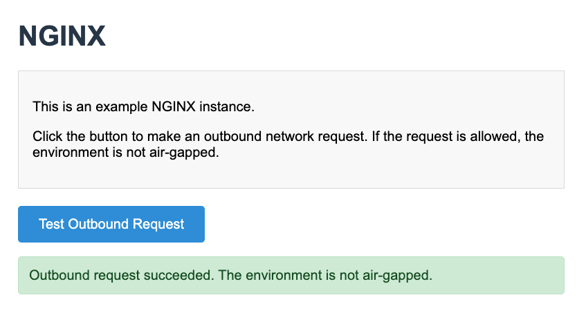 On the NGINX app webpage, click Test Outbound Request to make an outbound network request to